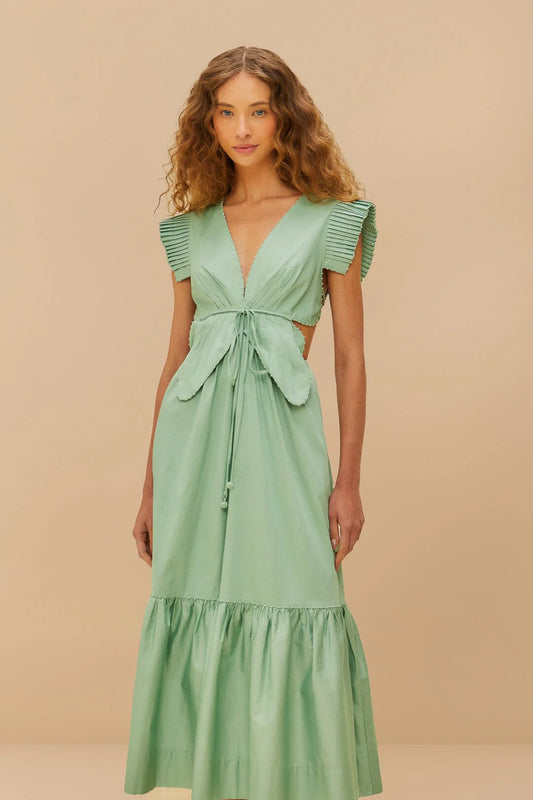 Light Green Butterfly Cut-out Midi Dress