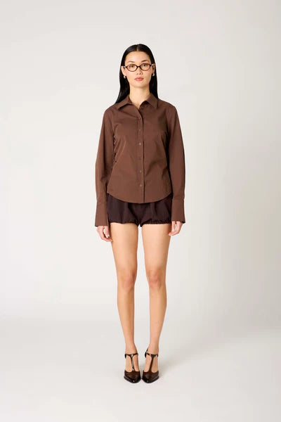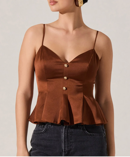 Paislee Satin Pleated Peplum Top BrownRegular price $ 2,250.00 MXNRegular priceUnit price / per-