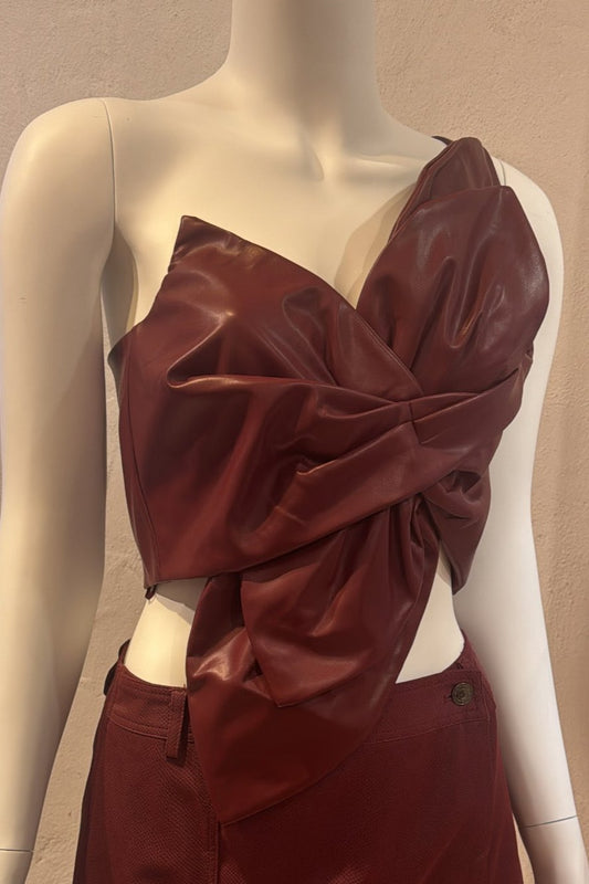 One Shoulder Knotted Twist Faux Leather Crop TopRegular price $ 880.00 MXNRegular priceUnit price / per-
