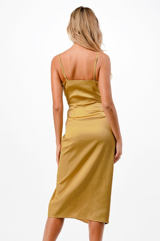Metallic Fabric Shirring Midi Dress Black & Silver