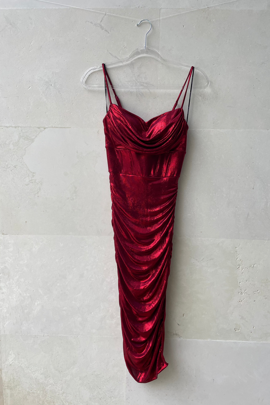 Techno Crepe Whit Glitter Stretch Mini Dress Red
